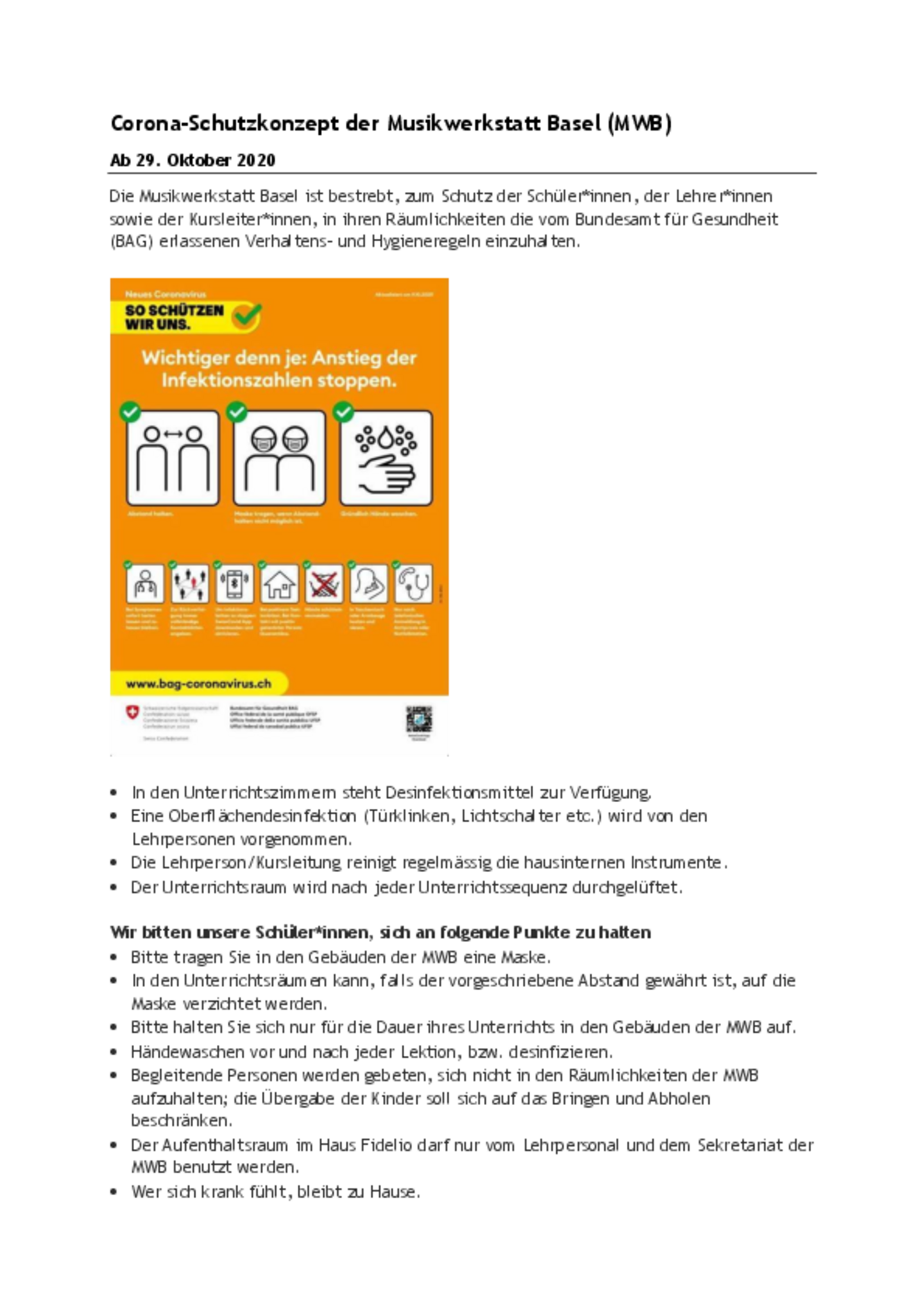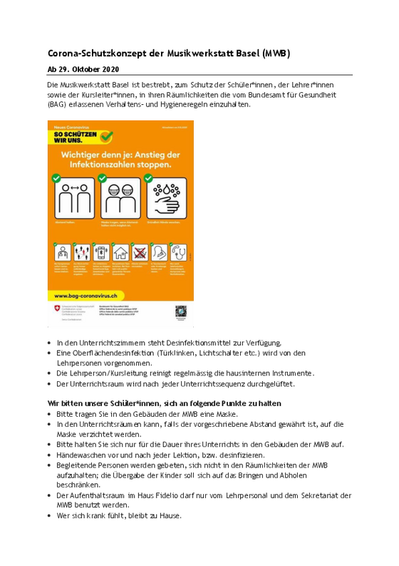 Corona-Schutzkonzept der Musikwerkstatt Basel